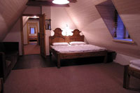 DG - Schlafzimmer (3 Betten + 2 Matratzen), Schlafzimmer (3 Betten + 2 Matratzen), Schlafzimmer (4 Betten), Kinderbett auf Wunsch. Die Matratzen befinden sich auf der Empore, man erreicht sie über eine Leitertreppe.