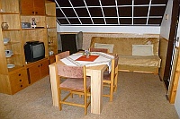 Wohnzimmer mit SAT-TV, Kochnische (Geschirr, Herd, Kühlschrank, Mikrowelle, Wasserkocher), Schlafzimmer (4 Betten), im DG ein Schlafzimmer (2 Betten), Dusche/WC